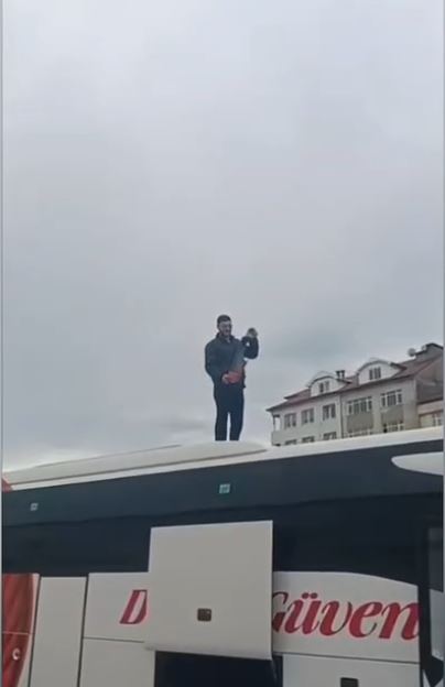 Trabzon'un Sürmene ilçesinde seyir halindeki kamyonun kasasındaki yangın söndürme tüpü gürültüyle patladı. Patlamayla fırlayan tüp, karşı şeride savrulup, yolcu otobüsünün tavanına düştü. O anlar, güvenlik kamerasına yansıdı.