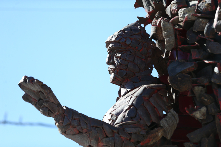 Anıt; savaş malzemeleri, bomba parçaları, şarapnellerden oluşuyor