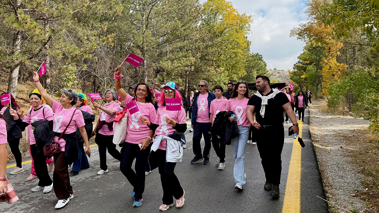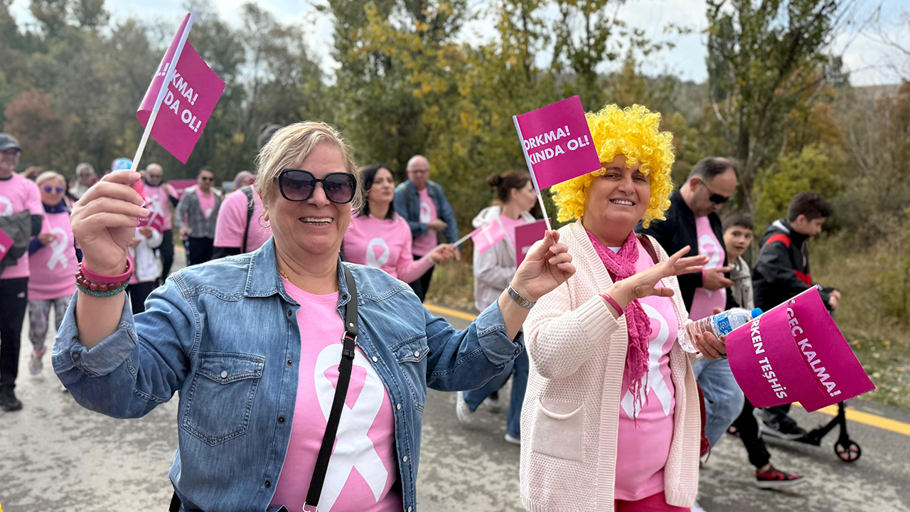 Özel bir hastane tarafından Gölbaşı ilçesindeki Eymir Gölü sahilinde gerçekleşen yürüyüşe kanseri yenenler, tedavisi devam eden hastalar ve sağlık çalışanları katıldı. Kadın-erkek onlarca kişi pembe tişörtlerini giyerek, göl çevresinde yürüdü. Yürüyüşte 'Erken teşhis hayat kurtarır' ve 'Geç kalma sağlıklı kal' sloganları atılarak, erken teşhisin önemine vurgu yapıldı. Yürüyüş sonunda ise katılanlara madalya verildi.