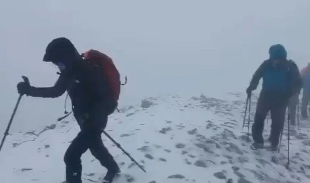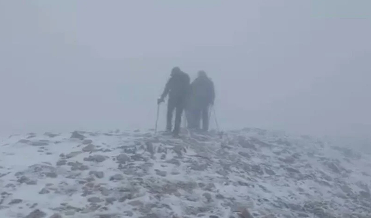 2 bin 543 rakımlı zirve beyaza ise sabah saatlerinde beyaza büründü. Dağcılar, kar yağışını zirveye tırmanıp kar üstünde kahve pişirerek kutladı.