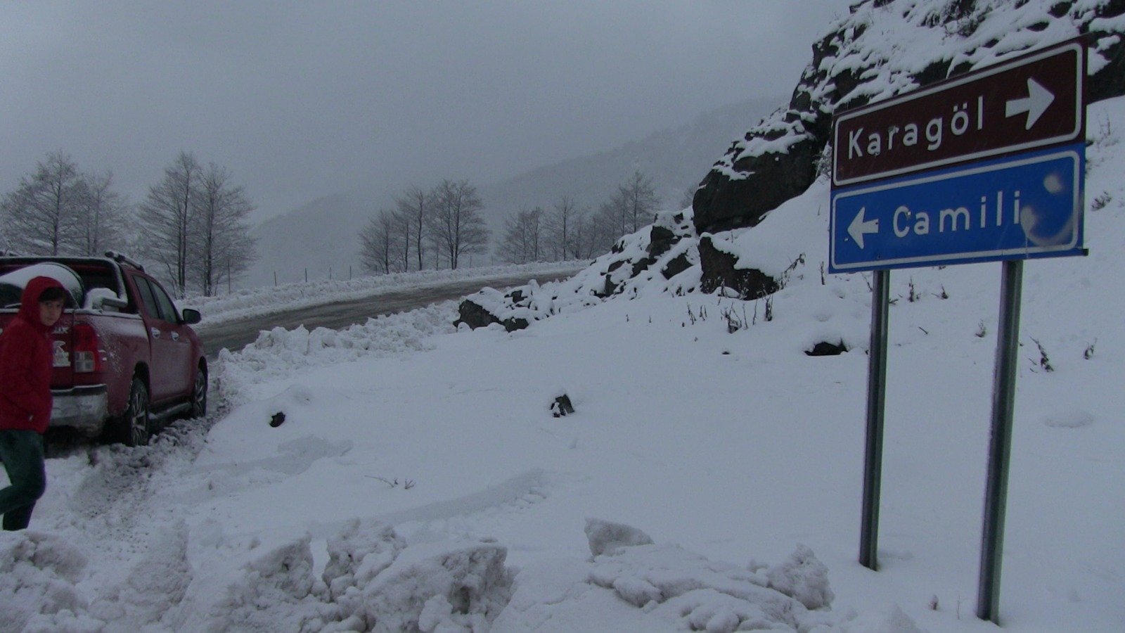 Artvin'in Borçka ilçesine bağlı, Gürcistan sınırında yer alan Camili bölgesinde etkili kar yağışı nedeniyle sürücüler zor anlar yaşadı. Ekipler, iş makineleriyle kardan kapanan yollarda çalışma yürütürken, yolda kalan sürücüler, ateş yakarak ısınmaya çalıştı, çocuklar ise oyuncaklarıyla oynayarak karın keyfini çıkardı.