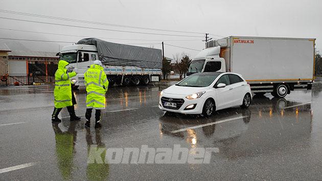 Konya-Antalya kara yolunda başlayan kar yağışı ulaşımda aksamalara neden oluyor.