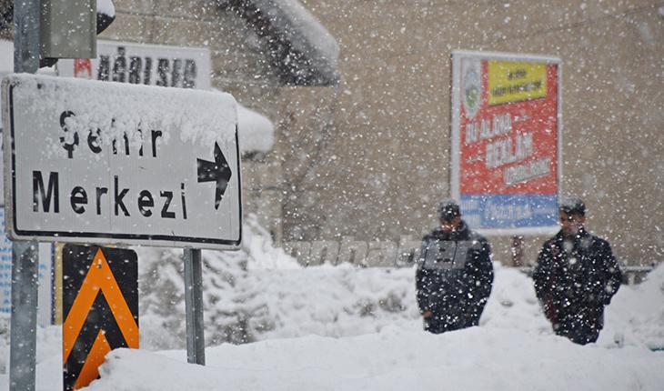 Eleşkirt ilçesinde ikindi saatlerinde etkisini artıran kar yağışı sonrası cadde ve sokaklar karla kaplandı.