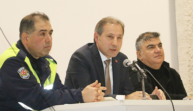 Konuşmaların ardından Trafik Denetleme Şube Müdürlüğü tarafından servis şoförlerine; okul servis araçları yönetmeliği, trafikte çocuk- okul servis araçları ve denetimi, trafikte saygı ve güvenli sürüş olmak üzere dört başlık adı altında önemli bilgiler verildi. Okul servis araçlarında aranacak şartlar, okul servis araçlarında taşımacılık şartları ve yükümlülüklerinin neler olduğu, öğrenciyi taşıyan servis şoförünün nasıl davranması gerektiği gibi önemli başlıklar aktarılırken, hız, emniyet kemerinin önemin ve araçla seyir halindeyken özellikle cep telefonuyla konuşmaması konularına vurgu yapıldı.