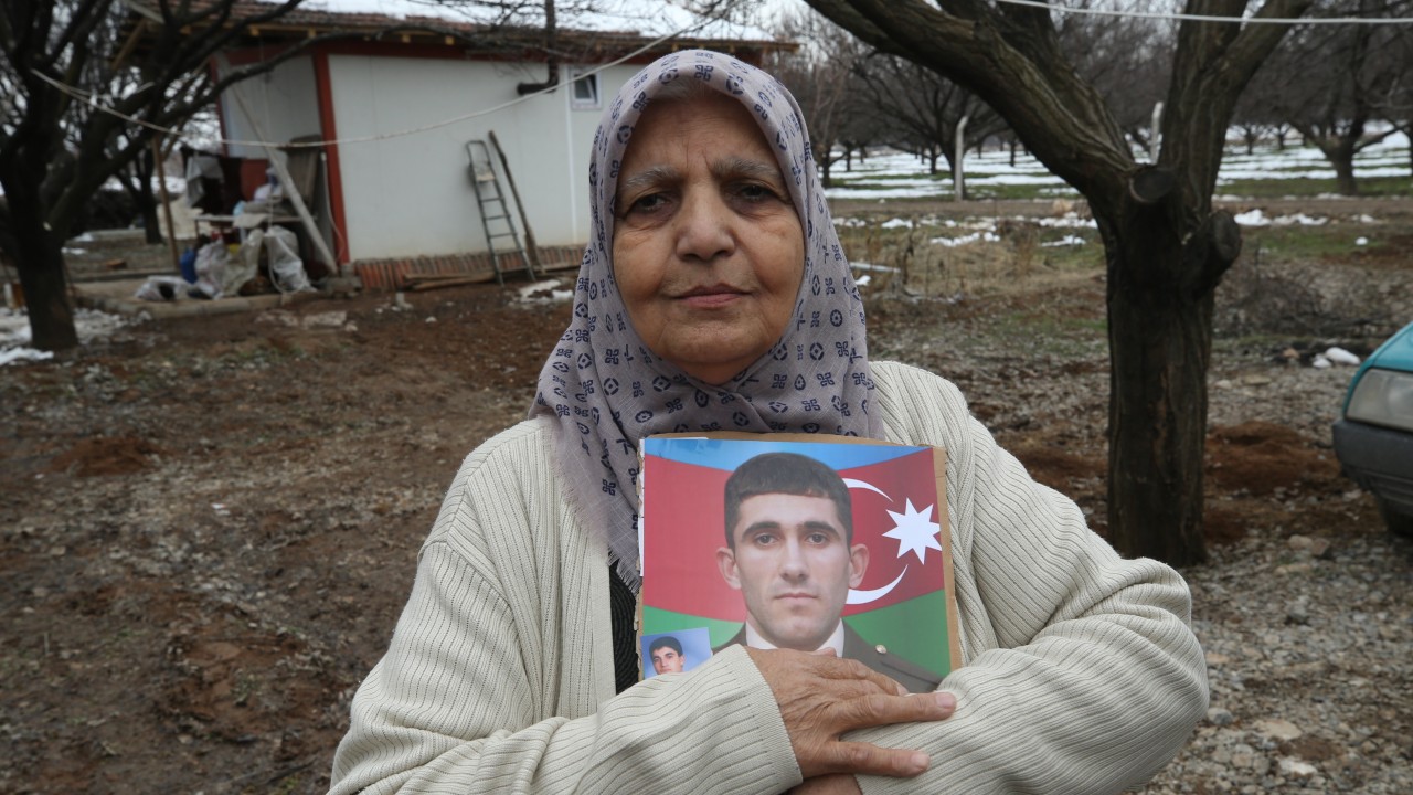 Azerbaycan'dan bir annenin gönderdiği, üzerinde şehit oğlunun fotoğrafının yer aldığı yardım kolisi Malatyalı depremzede şehit annesi Ayşe Şişman'a ulaştırıldı.