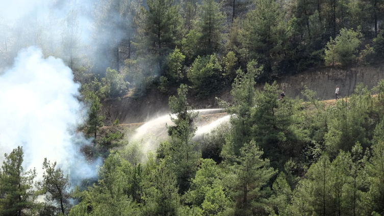 İhbar üzerine bölgeye itfaiye ekipleri ile orman işletmeye ait arazözler sevk edildi.Ekiplerin yüksek ve eğimli bölgede etkili olan alevlere müdahalesi devam ediyor.