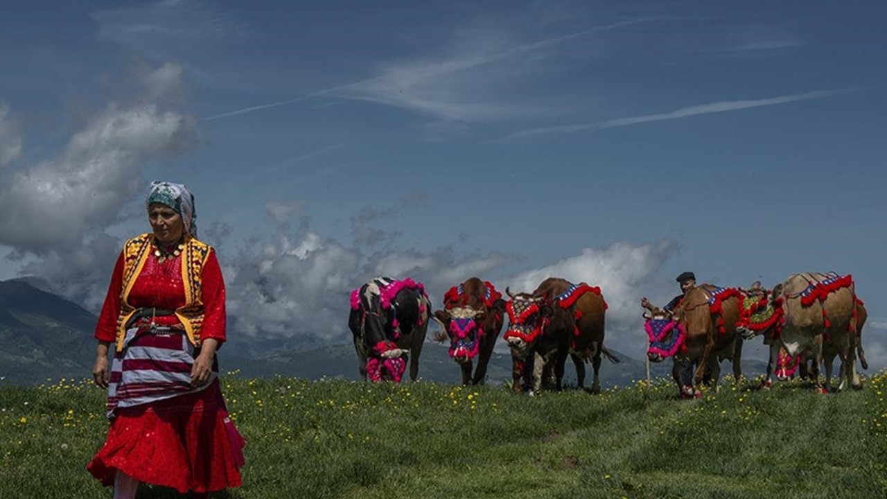 Trabzon'un Düzköy ilçesine bağlı Çal Mahallesi'nden Yedi Harman Yaylası'na ulaşmak için hayvanlarıyla yürüyerek 14 saat yol kateden Müslüm Samast, düğünlere, festivallere gider gibi her sene hayvanları da süsleyerek yaylaya çıktıklarını söyledi.