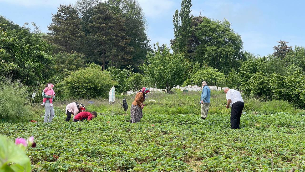 İstanbul'dan tohumu ilçeye getirilen ve yöreye uyum sağlamasıyla üretimine devam edilen çileğin hasadı yapılıyor. İlk meyvelerini veren çilekleri küçük, orta ve büyük ölçekli tarlalarda üreten yetiştiriciler, sabahın erken saatlerinde toplamaya başlıyor.