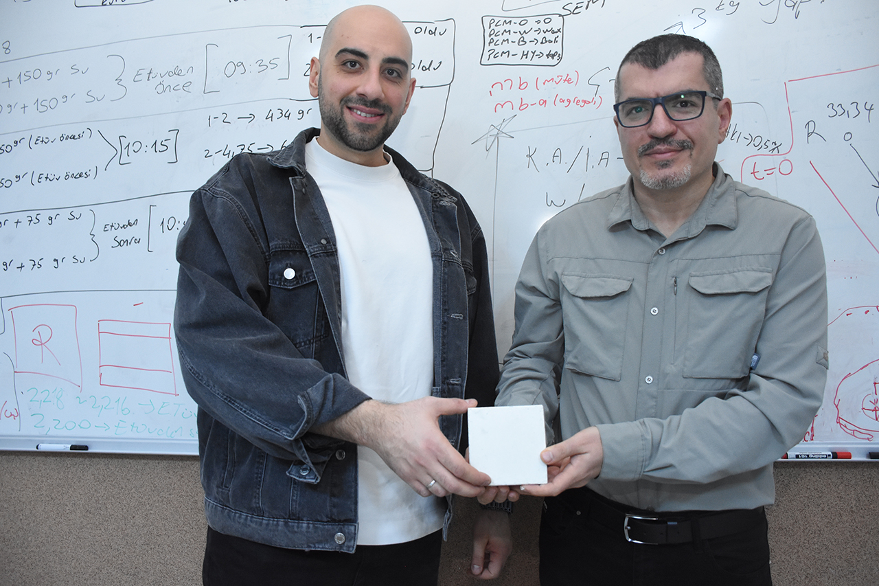 Karamanoğlu Mehmetbey Üniversitesi (KMÜ) Mühendislik Fakültesi Öğretim Üyesi Prof. Dr. Sadık Alper Yıldızel, Necmettin Erbakan Üniversitesi Mühendislik Fakültesi Öğretim Üyesi Doç. Dr. Yasin Onuralp ve KMÜ Mühendislik Fakültesi İnşaat Mühendisliği yüksek lisans mezunu Ali Yavuz, "Ponza Kapsüllü Soya Mumu Faz Değişim Malzemeli Köpük Beton Projesi" üzerine çalışma yaptı.