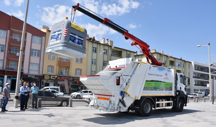 Karapınar Belediyesine, uzaktan kumandalı hidrolik sıkıştırmalı çöp Kamyonu ve 3 bin litre 100 konteyner kazandırıldı.