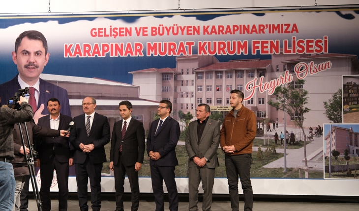 Karapınar'da Çevre, Şehircilik ve İklim Değişikliği Bakanı Murat Kurum'un isminin verildiği Fen Lisesi'nin açılacağı bildirildi.