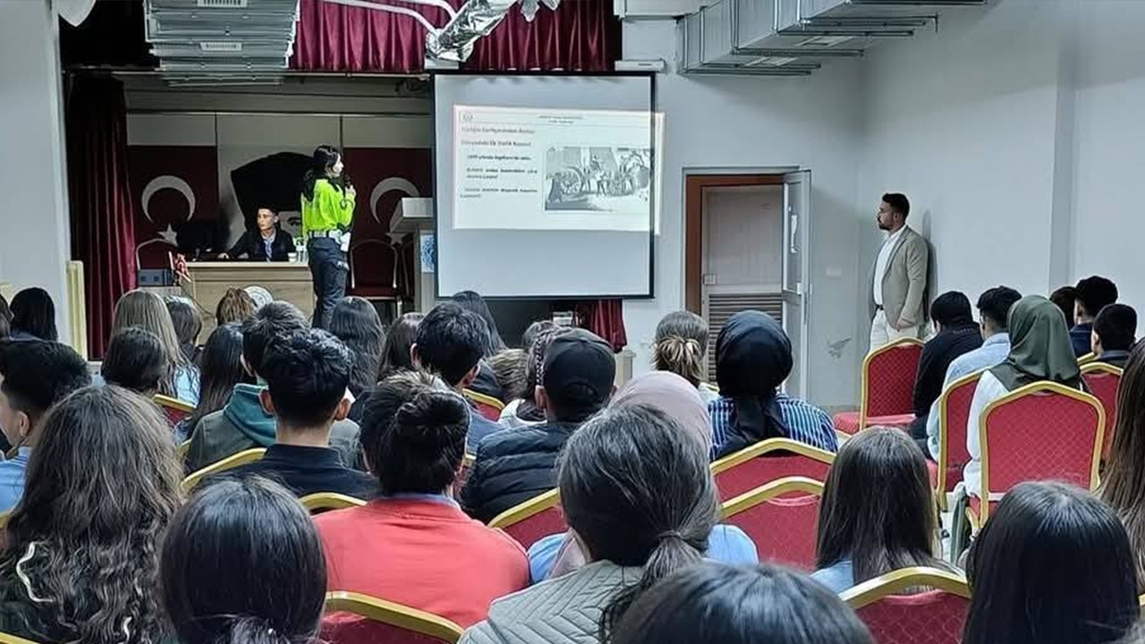 Konya'nın Karapınar ilçesinde 'Güvenli trafik güvenli gelecek' projesi çerçevesinde öğrencilere trafikle ilgili bilgilendirme yapıldı.