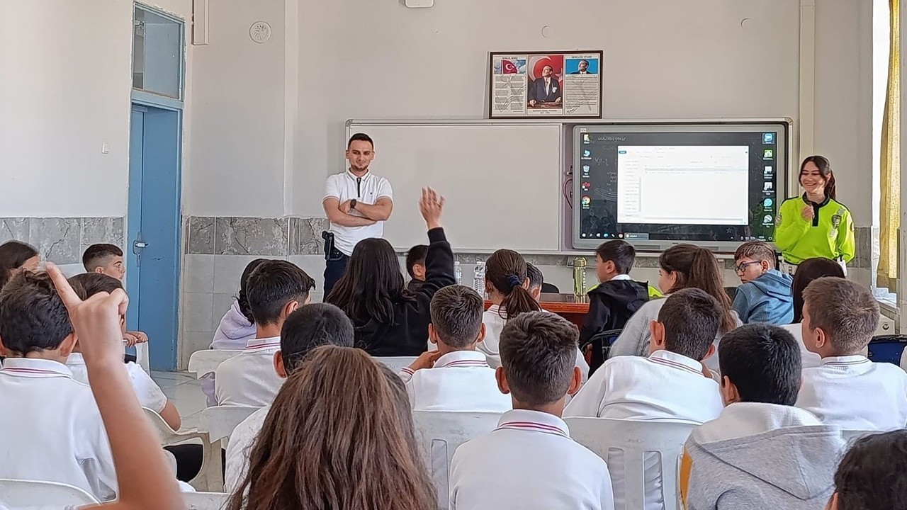 Konya'nın Karapınar ilçesinde Trafik Haftası etkinlikleri çerçevesinde, ortaokul öğrencilerine trafik güvenliği konusunda bilgilendirme semineri düzenlendi.