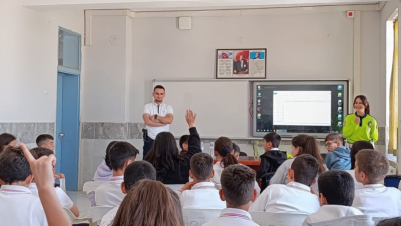 Konya'nın Karapınar ilçesinde Trafik Haftası etkinlikleri çerçevesinde, ortaokul öğrencilerine trafik güvenliği konusunda bilgilendirme semineri düzenlendi.