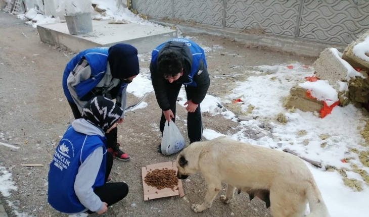 Karapınar'da Gençlik Merkezi Müdürlüğü çalışanları ve gönüllüler ilçenin bazı noktalarında aç kalan sokak hayvanlarına yiyecek verdi.