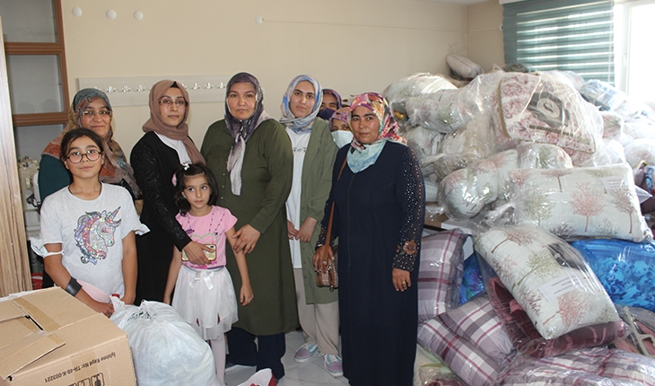 Karapınar Halk Eğitimi Merkezi Dikiş Nakış Kursu öğrencisi kadınlar, Manavgat'taki yangın nedeniyle bölgeye gönderilmek üzere yardım malzemeleri topladı.