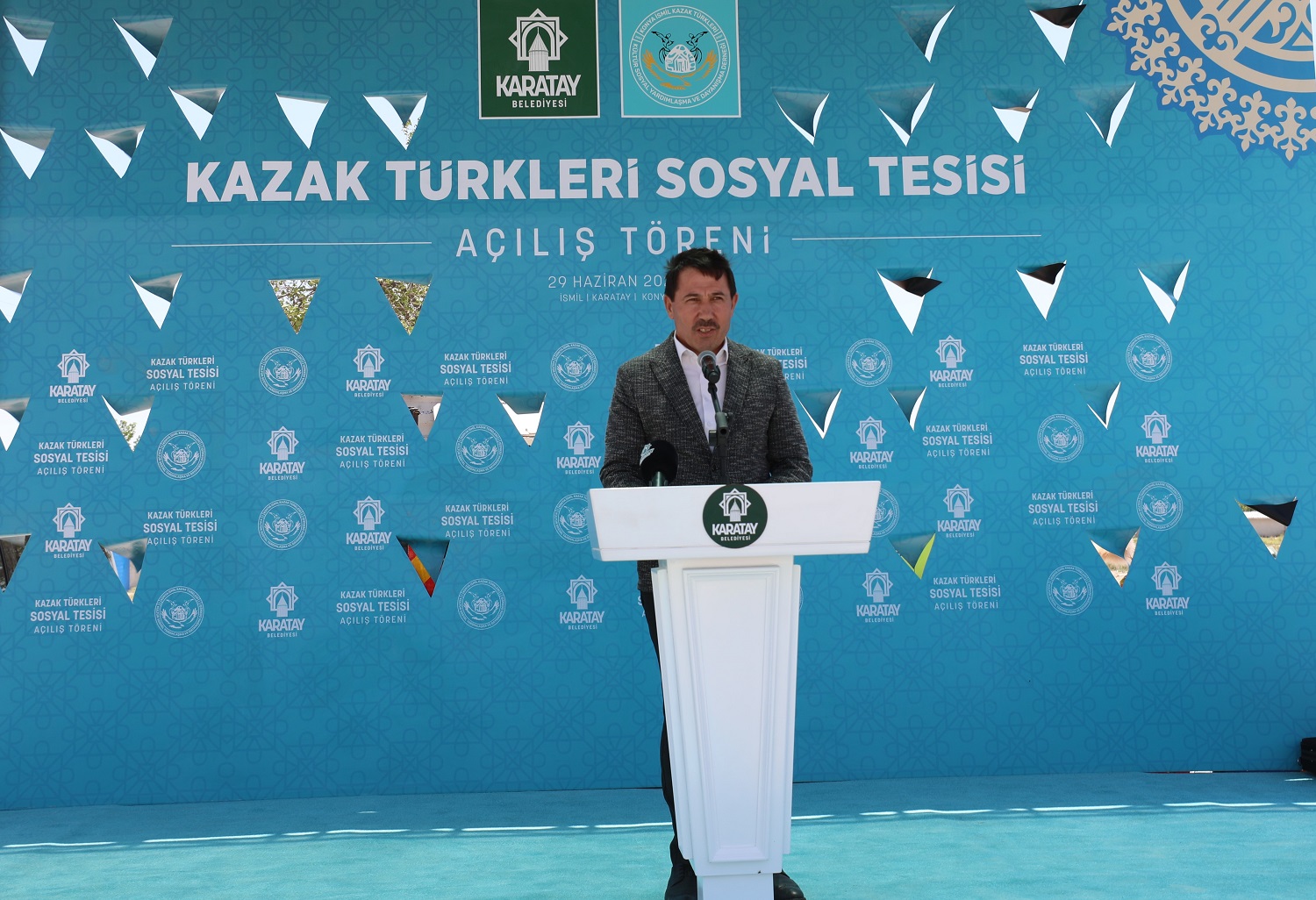 Sosyal Tesisin açılış töreninde konuşan İsmil Kazak Türkleri Kültür, Sosyal Yardımlaşma ve Dayanışma Dernek Başkanı Mehmet Muhammet Alim; Karatay Belediye Başkanı Hasan Kılca’ya Sosyal Tesisin yapımındaki katkılarından dolayı teşekkür etti.