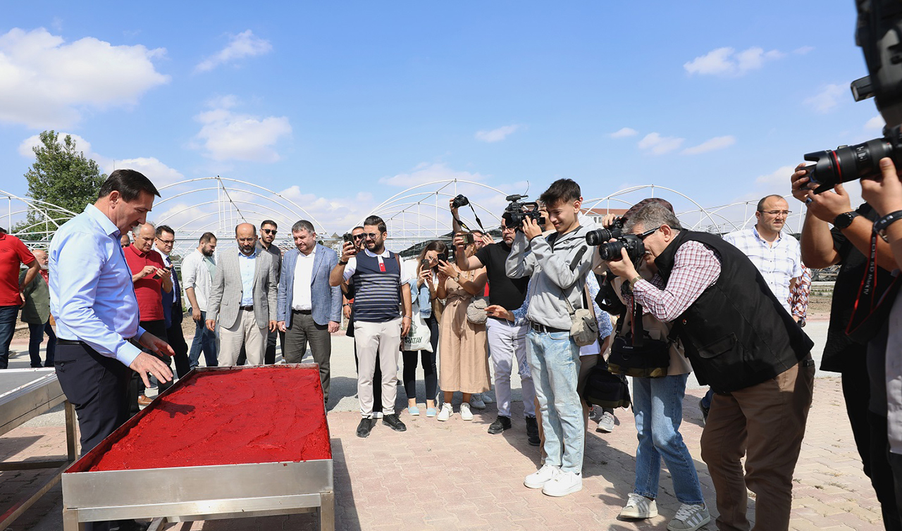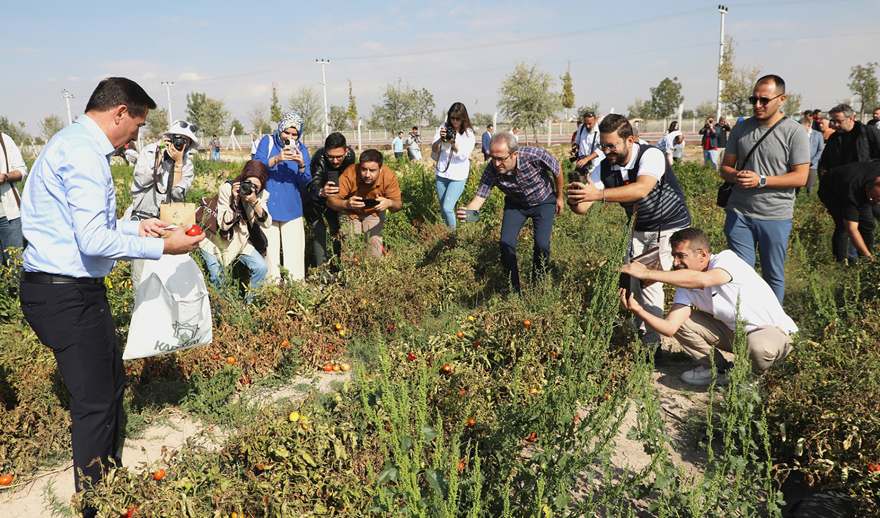 Karatay Belediye Başkanı Hasan Kılca, 300 bin metrekarelik alanda Ata Tohumları'nın üretildiği bahçede ve bahçeden elde edilen üretimlerin nitelikli gıda ürünlerine dönüştüğü Ata Tohumu Üretim Tesisi’nde Konya basınıyla buluştu.