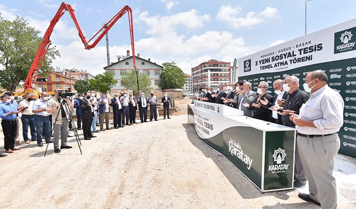 Protokol konuşmaların ardından Karatay Belediyesi tarafından Mengene, Doğuş ve Başak mahallelerine kazandırılacak 3 sosyal tesisin temelleri, Karatay İlçe Müftüsü Musa İmamoğlu’nun duasının ardından atıldı. Temel atma törenine; Karatay Kaymakamı Abdullah Selim Parlar, AK Parti Konya İl Başkanı Hasan Angı, Karatay Belediye Başkanı Hasan Kılca, Meram Belediye Başkanı Mustafa Kavuş, Selçuklu Belediye Başkan Vekili Tahir Özer, AK Parti Karatay İlçe Başkanı Mehmet Genç, MHP Karatay İlçe Başkanı Sebahattin Küçükdoğru, Karatay İlçe Müftüsü Musa İmamoğlu, Karatay Belediyesi Meclis Üyeleri ve muhtarlar katıldı.