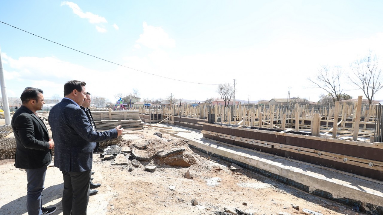 Kızören Lisesi inşaatını inceleyen Karatay Belediye Başkanı Hasan Kılca, Kızören İlkokulu’nu