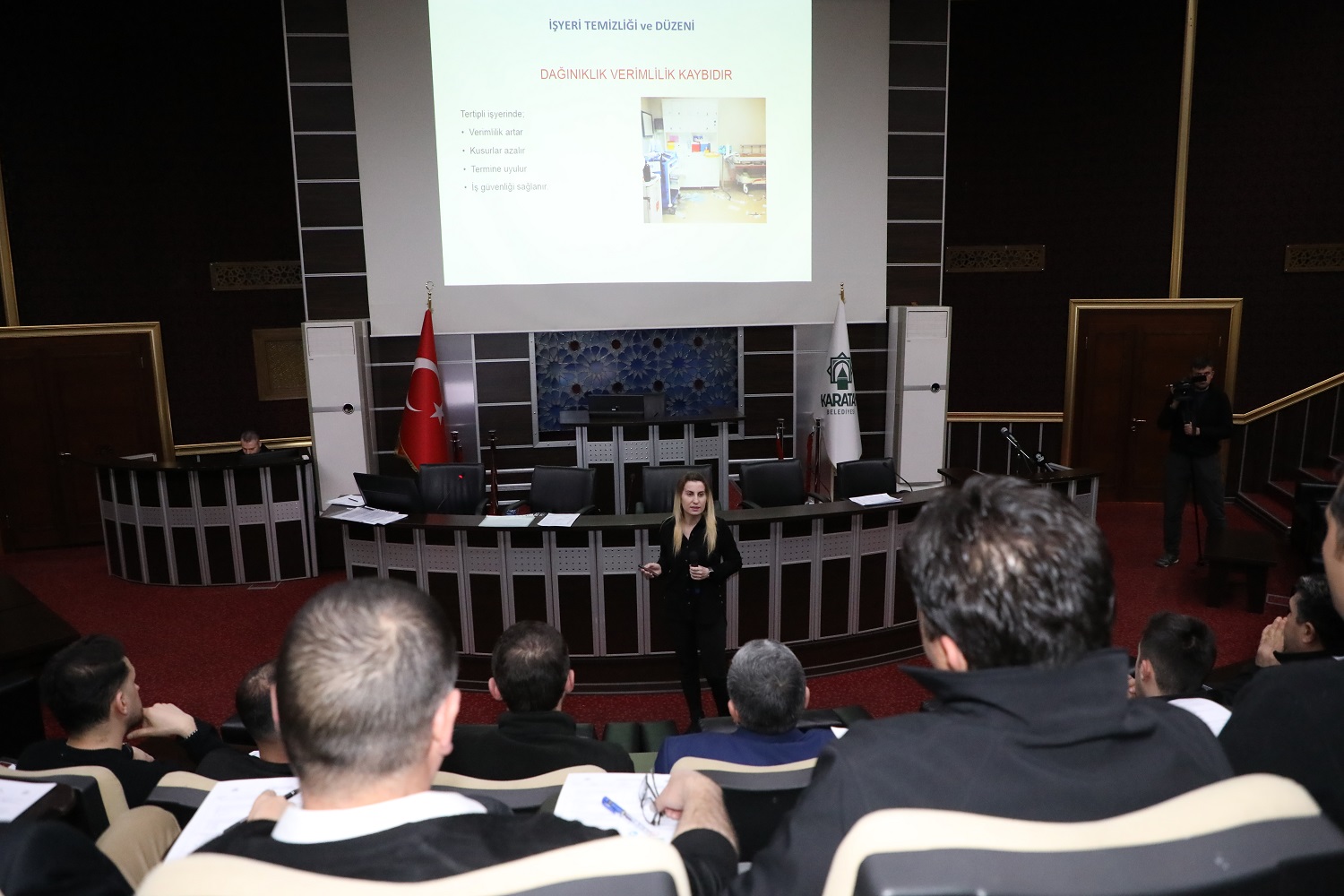 Karatay Belediyesi İnsan Kaynakları ve Eğitim Müdürlüğü, belediye personellerinin iş sağlığı ve iş güvenliği konularında bilgilendirilmesi amacıyla hizmet içi eğitim çalışmalarını sürdürüyor.