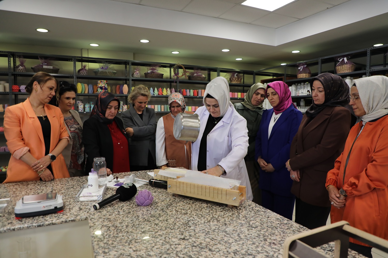 Protokol eşleri, atölyede kadınların sabun yapım süreçlerini yerinde inceledi ve yapılan çalışmalar hakkında detaylı bilgi aldı. Yürütülen başarılı projeler nedeniyle Karatay Belediye Başkanı Hasan Kılca ile Karatay Kent Konseyi Kadın Meclisi’ni tebrik eden protokol eşleri, “Atölye Karatay”ın kadınların sosyal ve ekonomik yaşamına önemli katkılar sunduğunu vurguladı.
