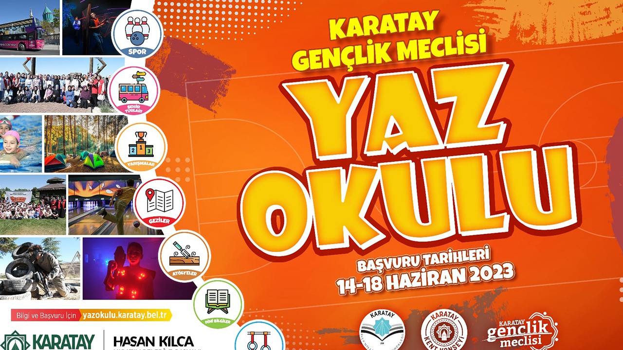 Lise kategorilerinde de yine Karatay'da ikamet eden veya Karatay'da herhangi bir lisede eğitim gören öğrencilerin başvuru yapabilecek. Öğrenciler; kendilerine sunulan Kur'an, siyer, ilmihal dersleri ve Ebru Atölyesi, Photoshop Atölyesi ile Öncü Şahsiyetler Atölyesi’nin yanı sıra hafta içi 3 farklı aktiviteye katılacaklar. Söz konusu aktiviteler arasında ise Bowling, Paintball, Lazer Tag, Yüzme, Halı Saha, At Binme, Sinema, Konya Bilim Merkezi Gezisi, Kamp, Oryantiring, Şehir Turu, piknik ve teknik geziler bulunuyor. https://yazkursu.karatay.bel.tr/ adresinden alınmaya başlanan Karatay Kent Konseyi Gençlik Meclisi Yaz Okulu, kontenjanlarla sınırlı olacak ve kurslar tamamen ücretsiz. 3 Temmuz tarihinde başlayacak ve 11 Ağustos tarihinde sona erecek kurslar ise Ali Ulvi Kurucu Anadolu İmam Hatip Lisesi, Hacıveyiszade Anadolu İmam Hatip Lisesi, 15 Temmuz Şehitleri Anadolu Lisesi ve Prof. Fuat Sezgin Ortaokulu’nda gerçekleştirilecek. (Yunus Köroğlu)