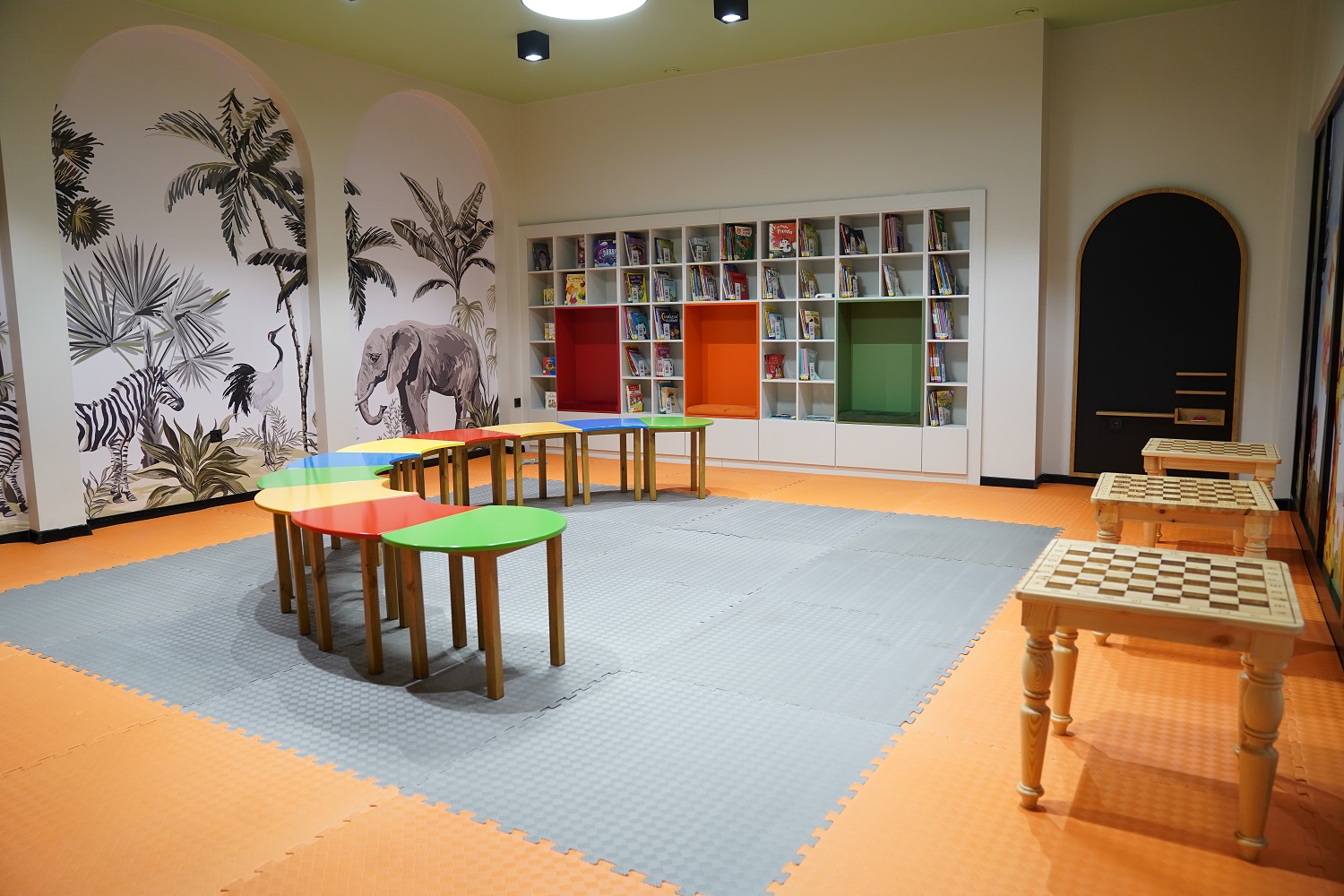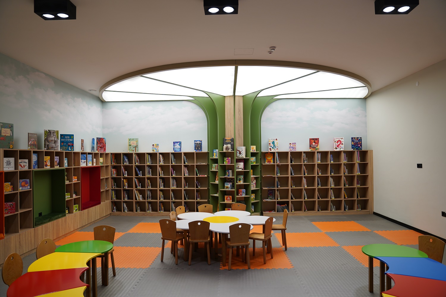 asma kat olarak inşa edildi. İçerisinde 0-3 yaş Bebek Kütüphanesi, 3-6 ve 6-12 yaş Çocuk