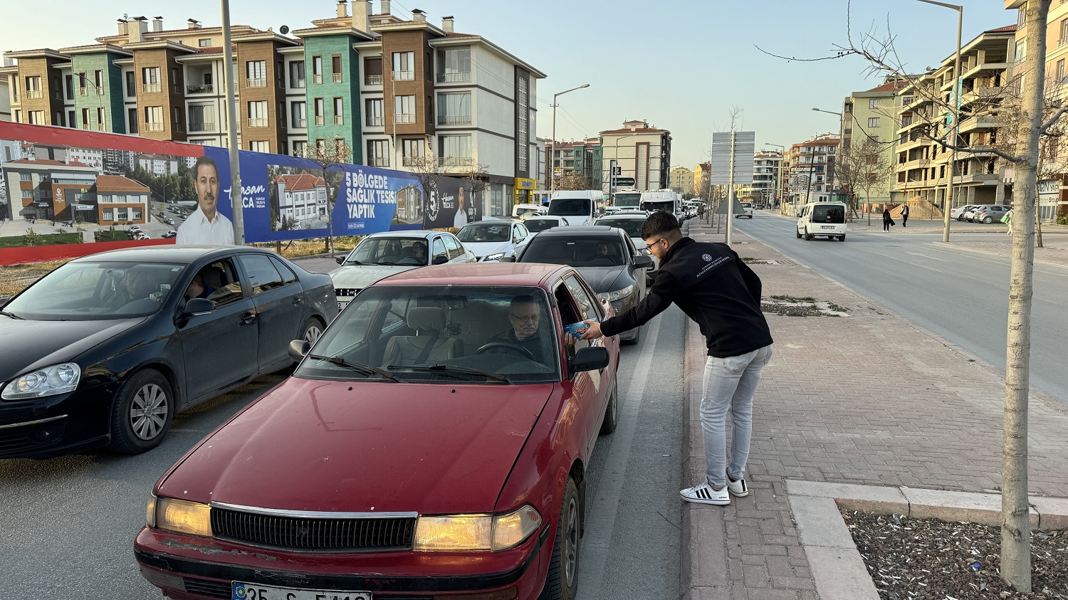 “İftara 5 Kala” projesiyle birlik, beraberlik ve kardeşliğin getirdiği paylaşma sorumluluğunu pekiştiren ekipler, özellikle trafik akışının yoğun olduğu iftar saatlerinde yolda kalan sürücüler ve otobüsteki vatandaşlara içerisinde hurma, su, kek, meyve suyu ve ıslak mendilden oluşan iftariyelik paketleri dağıtıyor. “İftara 5 Kala” projesiyle iftara yetişemeyenlere ikramlarını yapan belediye ekipleri, paylaşmanın ve birlikte olmanın simgesi olan Ramazan ayında vatandaşların takdirini topluyor.