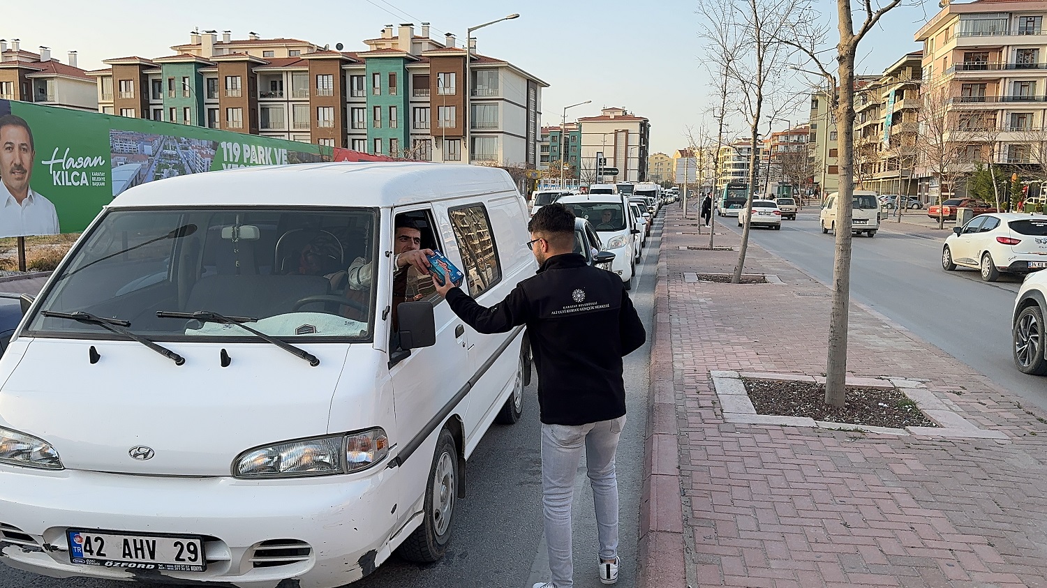Karatay Belediyesi, Ramazan ayı boyunca ‘İftara 5 Kala’ projesiyle ilçenin farklı noktalarında evlerine iftara yetişemeyen vatandaşlara veya iftar saatinde çalışanlara iftarlık ikramında bulunuyor.
