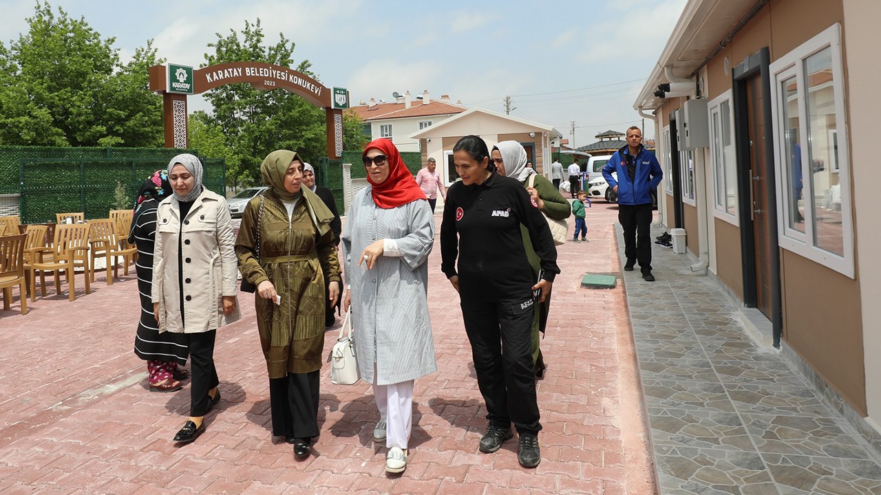Konya Büyükşehir Belediye Başkanı Uğur İbrahim Altay’ın eşi Ayşe Altay, Karatay Belediye Başkanı Hasan Kılca’nın eşi Şerife Kılca, AFAD Konya İl Müdürü Yıldız Tosun, Karatay Belediyesi Kent Konseyi Kadın Meclisi Başkanı Fazilet Koçyiğit, Karatay Belediyesi tarafından depremzede ailelerin barınabilmesi amacıyla Karaaslandede Mahallesi’nde hayata geçirdiği Karatay Konukevi’nde anneler ile bir araya geldi.