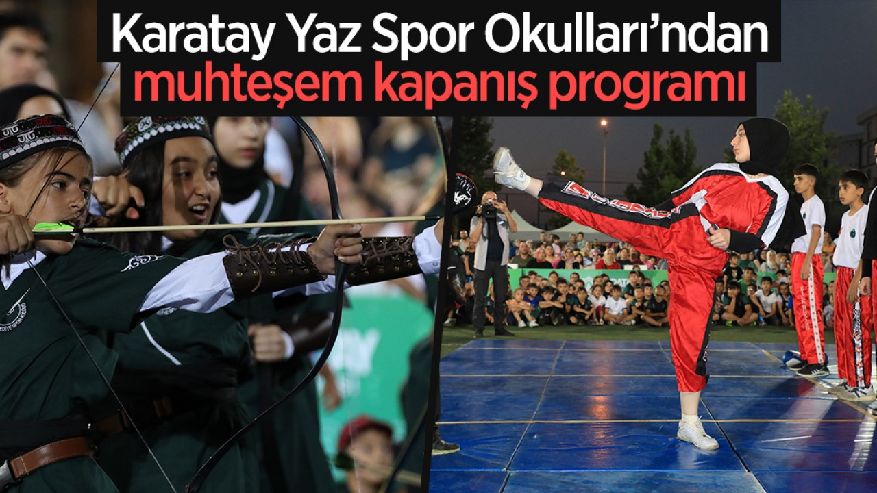 KARATAY YAZ SPOR OKULLARI 2023 DÖNEMİNE MUHTEŞEM FİNALFutbol, Voleybol, Basketbol, Güreş, Yüzme, Jimnastik, Kick Boks, Karate, Taekwondo, Masa Tenisi, Okçuluk ve Satranç gibi 12 branşa kayıt yaptıran 3 bin 859 sporcu, alanlarında uzman eğitmenler eşliğinde 19 Haziran ile 25 Ağustos tarihleri arasında eğitimler aldı. Karatay Yaz Spor Okulları’nın 2023 Dönemi’nin kapanış programı da muhteşem bir finalle gerçekleştirildi.