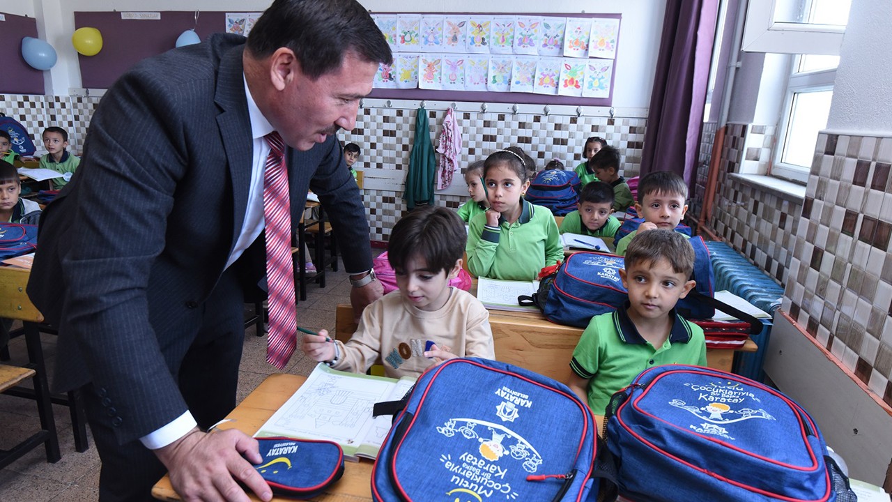 Bu kapsamda Başkan Hasan Kılca, İlçe Kaymakamı Yavuz Güner ile İlçe Milli Eğitim Müdürü Sami Sağdıç, Karatay Yavuz Selim İlköğretim Okulu’nu ziyaret ederek bu özel günde minik öğrenciler ve öğretmenlerle bir araya geldiler. Ziyarette Hasan Kılca, Yavuz Güner ile Sami Sağdıç ayrıca, içlerinde kırtasiye malzemesi bulunan okul çantası ve beslenme çantasından oluşan desteğini de öğrencilere dağıttılar.