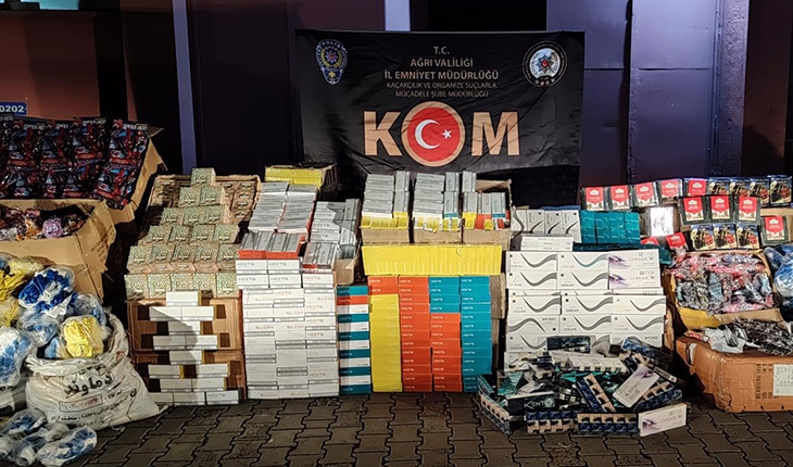 Çalışma sonucu Ağrı-Doğubayazıt kara yolundaki Bölge Trafik Denetleme Şube Müdürlüğüne bağlı yol kontrol ve uygulama noktasında durdurulan bir kargo aracında ekiplerce arama gerçekleştirildi.Aramada, 1280 paket kaçak sigara, 9600 tütün sarma kağıdı, 6500 paket elektronik sigara tütünü, 1800 çocuk kol saati, 195 çocuk akıllı kol saati, 900 oyuncak, 1180 gözlük, bin 50 bez eldiven, 280 yabancı marka bıçak ve 40 paket kaçak çay ele geçirildi.