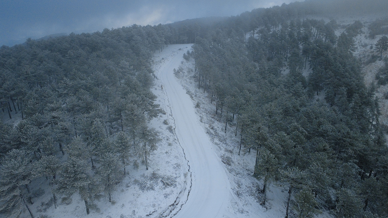 Gece saatlerinden itibaren etkisini artıran kar yağışıyla birlikte Manisa'nın Demirci ilçesindeki dağlar ve yollar beyaz örtüyle kaplandı. Kar yağışının ardından havadan görüntülenen Demirci Dağı ve çevresi, doğayla iç içe eşsiz görüntülere sahne oldu.