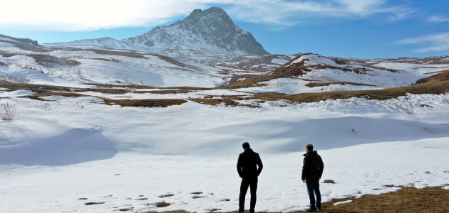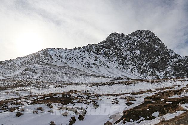 Dağın kuzey kesimini kısmen kaplayan kar, üstünü örttüğü dağdaki devasa kayalarla kartpostallık manzaralar sergiliyor.