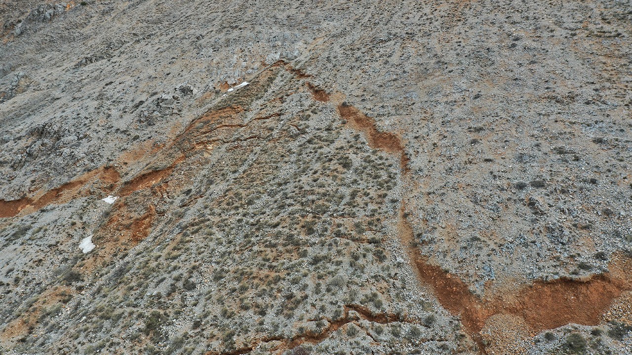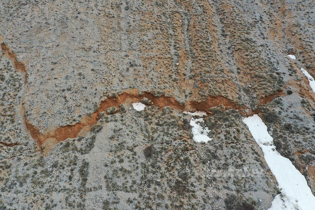 Adıyaman'ın Çelikhan ilçesindeki Akdağ Dağı'nda, depremlerde oluşan yarık ve çökmeler karların erimesiyle ortaya çıktı.