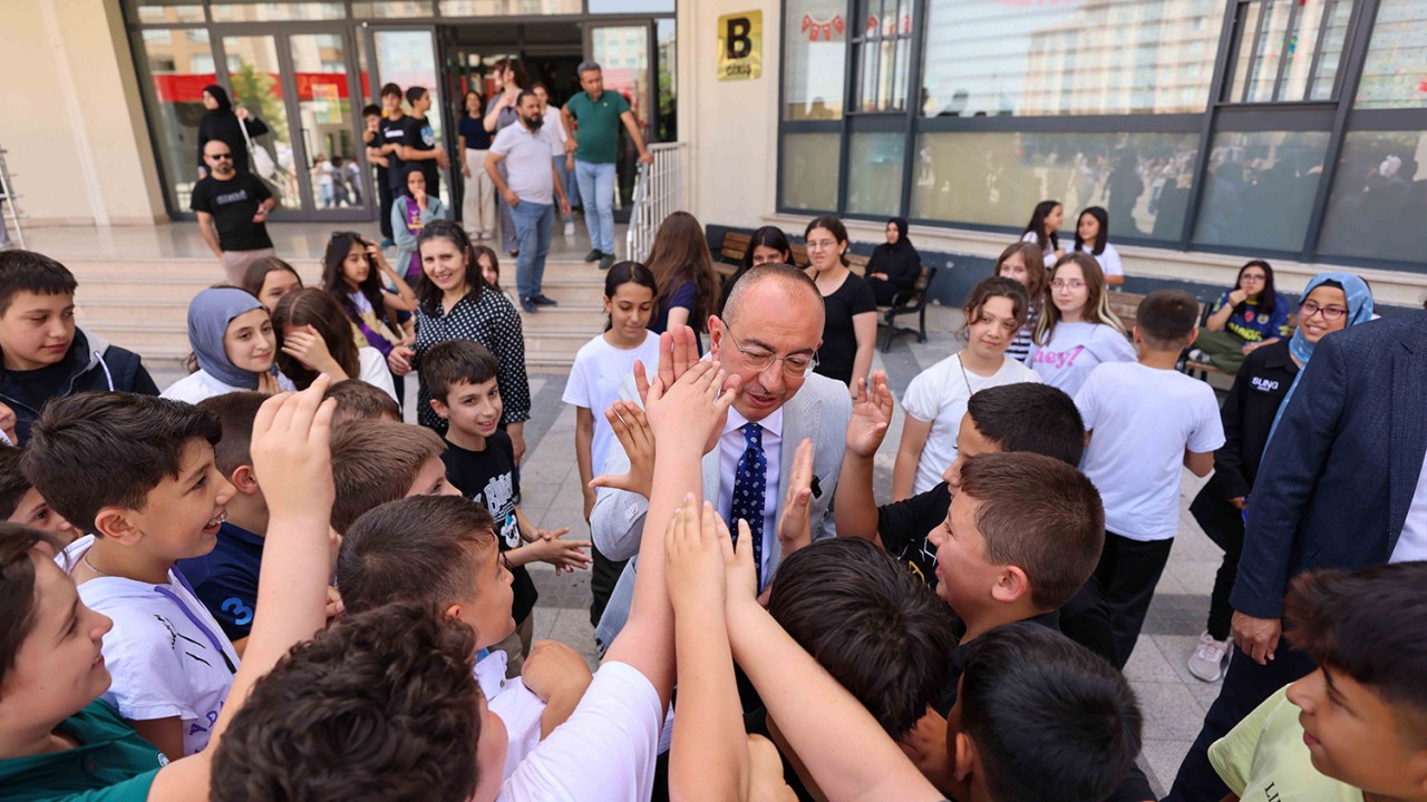 öğrencilerinin karne heyecanına ortak oldu. Çocuklara karnelerini veren Başkan Kavuş’a