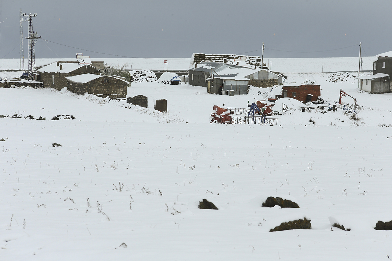 Kars'ta geceden itibaren aralıklarla devam eden kar yağışıyla yüksek rakımdaki köyler beyaza büründü.