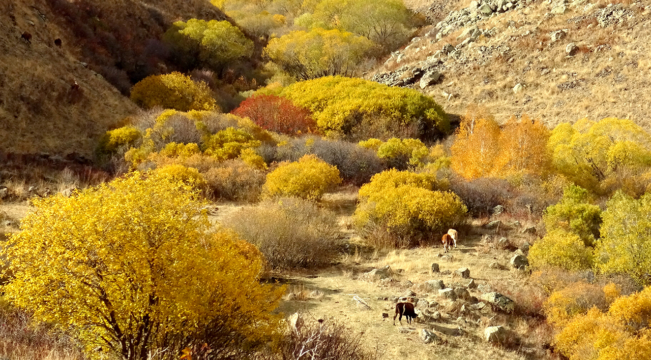 Yılın yarısı kar altında kalan ilçenin 2 bin 380 rakımlı Handere ve Karaurgan bölgesinde sarı, yeşil ile kızıl tonlara bürünmüş kavak, kuşburnu ve kayın ağaçları güzel görüntüler oluşturdu.
