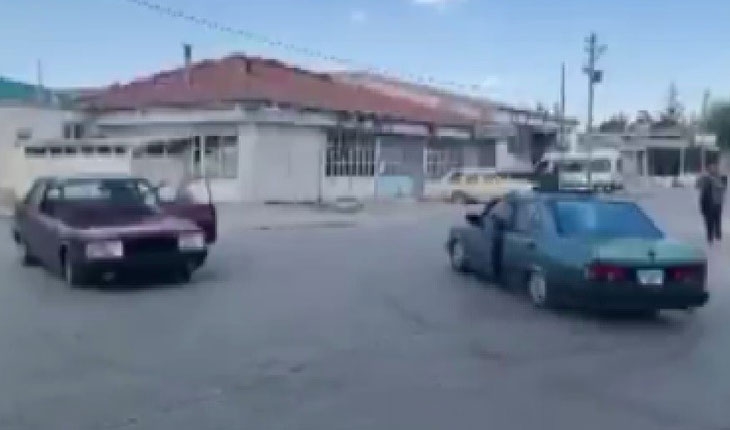 Konya’da iki otomobilin karşılıklı drift yaptığı anlar cep telefonu kamerası tarafından görüntülendi.