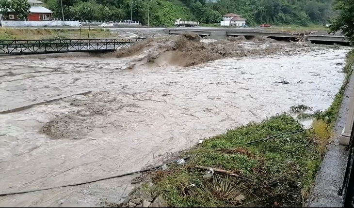 Aşırı yağışlar nedeniyle taşan çay, İnebolu ilçesinin iki yakasını birbirine bağlayan köprüyü sürüklerken, ilçede birçok alan su altında kaldı.