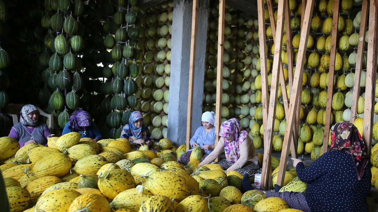Bir kısmı hemen satışa sunulan kavunların kalanı ise depolara taşınıyor. Burada saplarından keten ipliklerle bağlanıp ahşap sırıklara asılan kavunlar, kış aylarında pazara sunulmak üzere bekletiliyor.