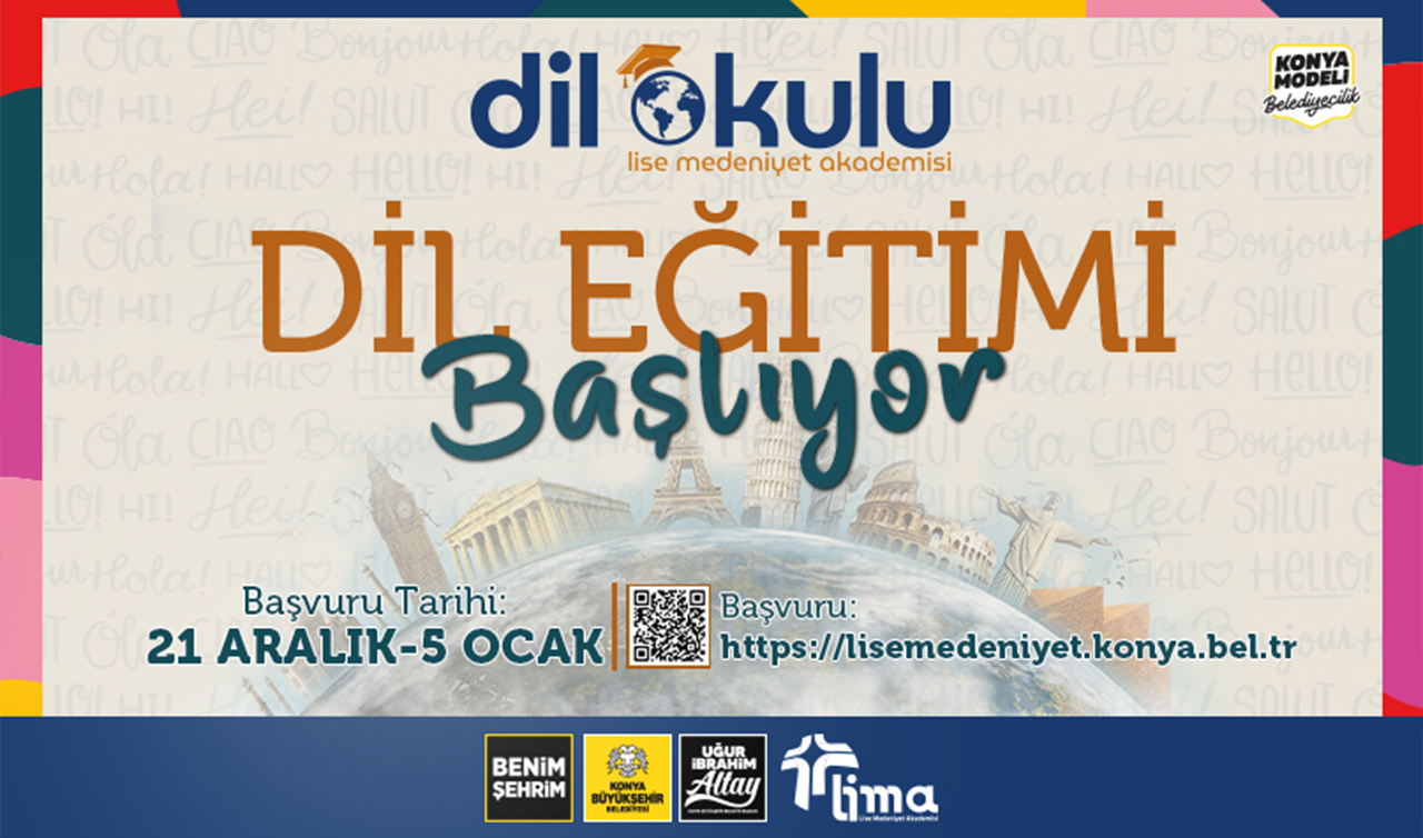 Konya Büyükşehir Belediyesi Lise Medeniyet Akademileri’nde İngilizce öğrenmek isteyen 9. ve 10. sınıf öğrenciler için Dil Okulu düzenleniyor. Öğrencilere özel içerikle kapsamlı bir dil eğitimi sunulması planlanan Dil Okulu’nda kayıtlar 21 Aralık-5 Ocak tarihleri arasında alınacak.