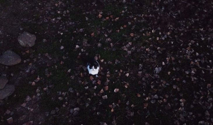 Bitlis’in Tatvan ilçesinde havalanan dronu fark edip takip eden kedilerin şaşkın halleri gülümsetti.