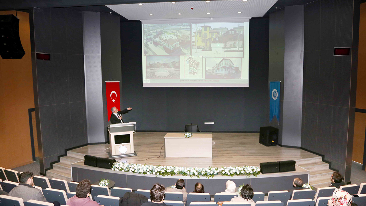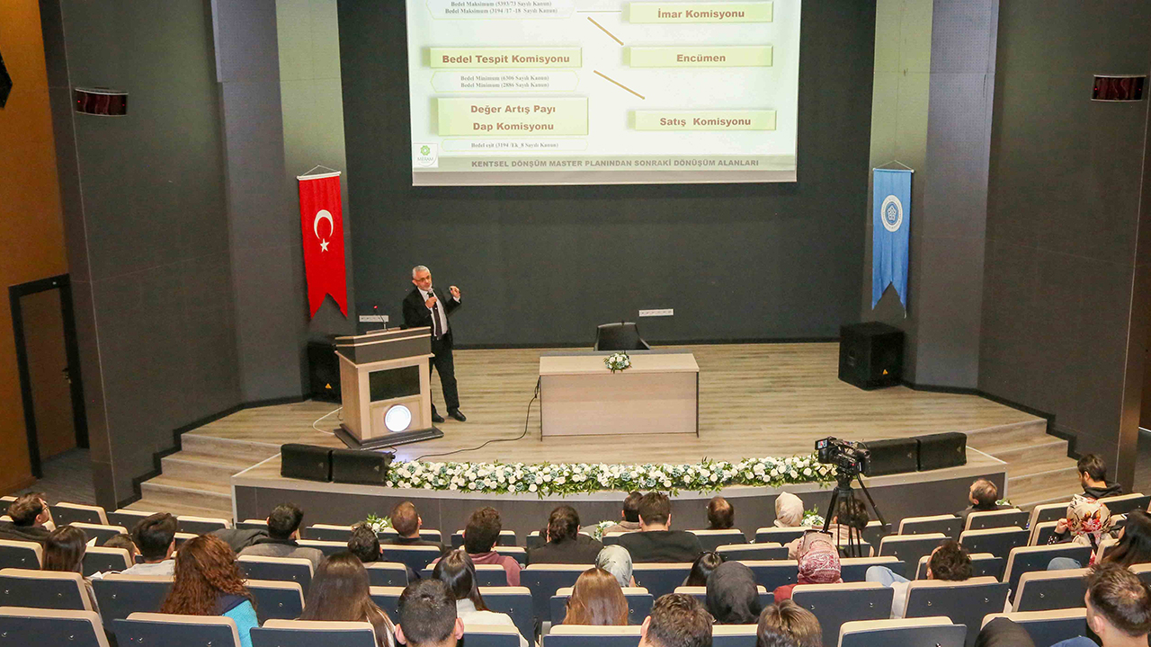 Meram Belediyesi, kentsel dönüşüm alanında elde ettiği bilgi, birikim ve tecrübeleri paylaşmaya devam ediyor. Daha önce farklı şehirlerle deneyimlerini paylaşan belediye, bu kez Necmettin Erbakan Üniversitesi Güzel Sanatlar ve Mimarlık Fakültesi Şehir ve Bölge Planlama Bölümü öğrencileri ve akademisyenleriyle birikimlerini paylaştı. NEÜ Güzel Sanatlar ve Mimarlık Fakültesi Hattat Hüseyin Kutlu Konferans Salonu’nda gerçekleştirilen seminere, Meram Belediye Başkan Yardımcısı Selahattin Özçelik konuşmacı olarak katıldı. Seminere Fakülte Dekanı Prof. Dr. Hüseyin Zahid Selvi ve Bölüm Başkanı Prof. Dr. Ümmü Gülsüm Dağlıoğlu ile öğretim üyeleri Doç. Dr. Fadim Yavuz ve Araştırma Görevlisi Musa Argun katıldı.