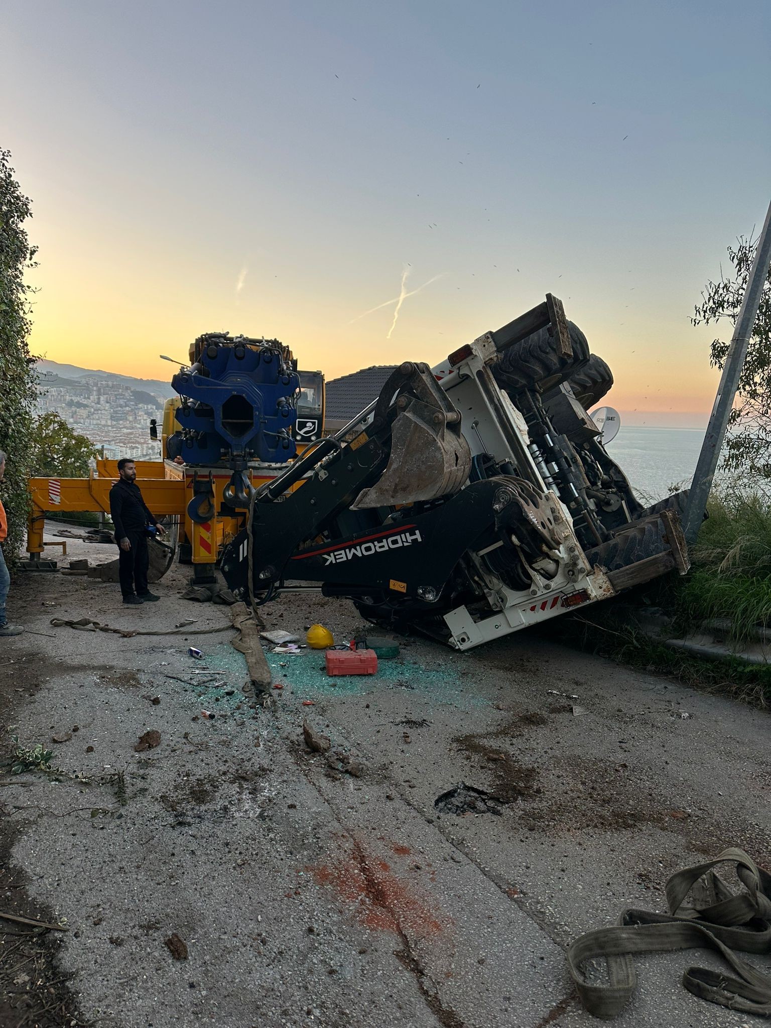 Olay, Güzelyalı Burgaz Mahallesi Ferah Sokak üzerinde bulunan bir evde yürütülen çalışmalar sırasında meydana geldi. Vinçle kaldırılan kepçe, henüz belirlenemeyen bir nedenle devrilerek yere düştü. O anlar çevrede bulunan vatandaşlar tarafından cep telefonu kamerasıyla kaydedildi.