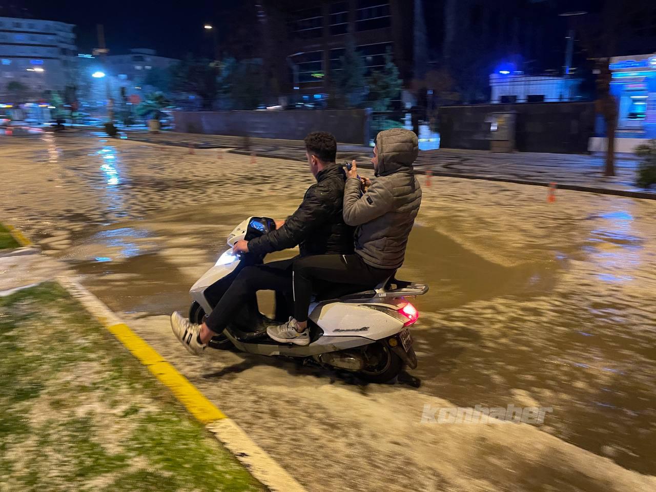 Kentte akşam saatlerinde başlayan yağış ve dolu nedeniyle bazı cadde ve sokaklarda su birikintileri oluştu. Caddelerde su birikintileri nedeniyle araç sürücüleri ve yayalar zor anlar yaşadı. Yağışın gece boyunca aralıklarla sürmesi bekleniyor.