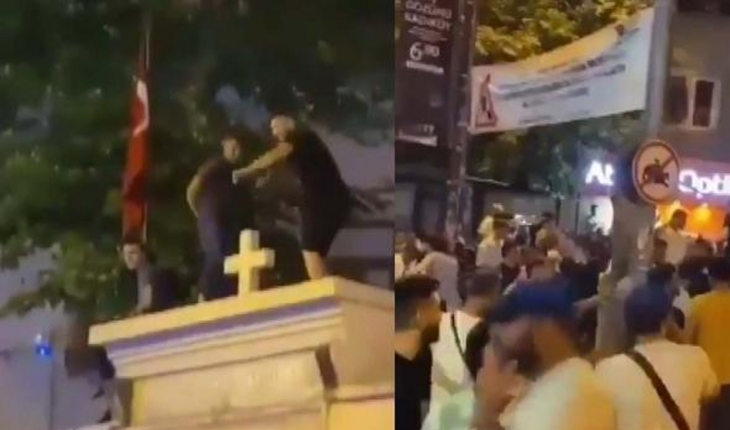 İstanbul Valiliğinden yapılan açıklamada, saat 00.55 sıralarında Kadıköy Caferağa Mahallesi Khalkedon Meydanı'nda, Surp Takavor Kilisesi'ne araçla gelen bazı şahısların, giriş kapısı üzerine çıkarak uygunsuz davranışlar sergilediklerinin tespit edildiği vurgulandı.
