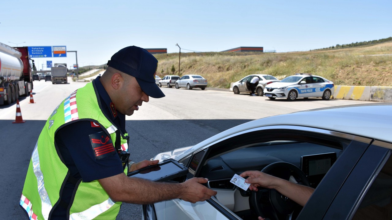 Jandarma ekipleri de Kırıkkale-Ankara kara yolu hızlı tren köprüsü altında gerçekleştirdikleri denetimlerde araç sürücüleri ile yolcuların Genel Bilgi Toplama (GBT) sorgusu ile rutin trafik kontrollerini yapıyor.